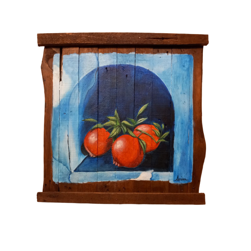 This wooden artwork celebrates the rich symbolism of the pomegranate, a timeless emblem of abundance, fertility, and renewal. Expertly carved, the fruit’s rounded form and textured details stand out against the natural wood grain, creating a striking balance of simplicity and elegance. The warm tones of the wood bring depth and life to the design, while the handcrafted finish reflects the care and artistry poured into every detail. A meaningful piece that embodies both beauty and tradition, it makes a powerful statement in any setting.