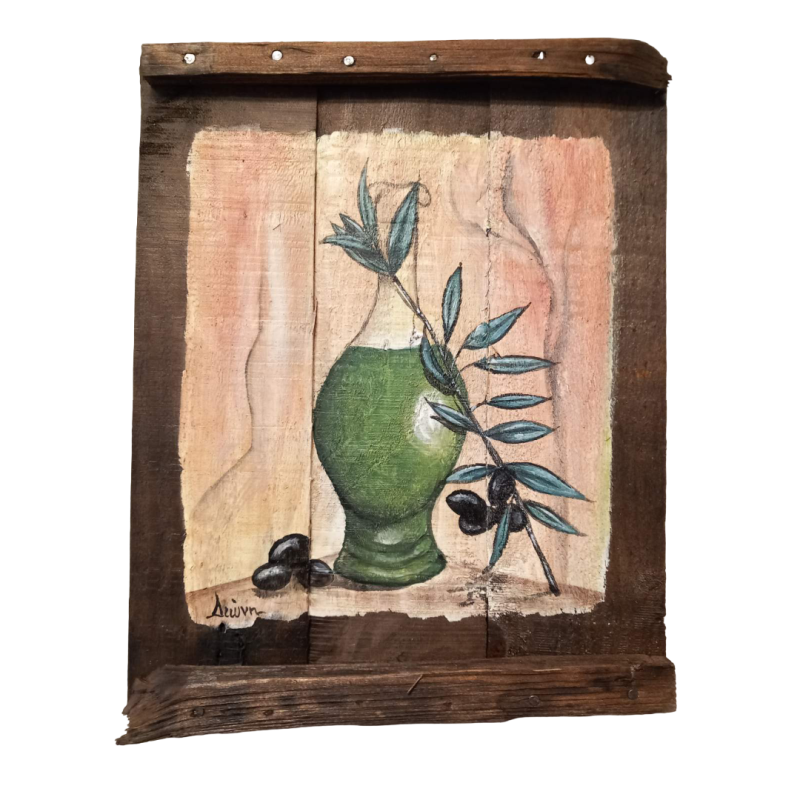 Αυτό το ξύλινο έργο τέχνης αναδεικνύει την απλή ομορφιά ενός μπουκαλιού ελαιόλαδου, ένα σύμβολο θρέψης και παράδοσης. Οι ζεστοί τόνοι του ξύλου αναδεικνύουν την ρουστίκ γοητεία του έργου, ξυπνώντας αναμνήσεις από οικογενειακές κουζίνες, κοινά γεύματα και την καρδιά της μεσογειακής ζωής. Μια παρηγορητική υπενθύμιση της καθημερινής αφθονίας, προσθέτει μια πινελιά οικειότητας και ζεστασιάς σε κάθε χώρο.
