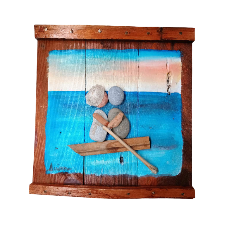 Μια μοναδική σειρά πίνακες από ατόφιο ξύλο με φόντο ζωγραφισμένο στο χέρι και ανάγλυφες παραστάσεις φτιαγμένες με κοχύλια, βότσαλα, μύδια, κομμάτια ξύλου, και άλλα φυσικά υλικά που δίνουν ένα μοναδικό αποτέλεσμα.